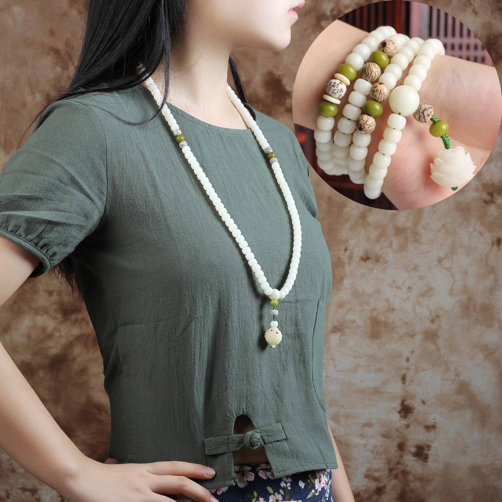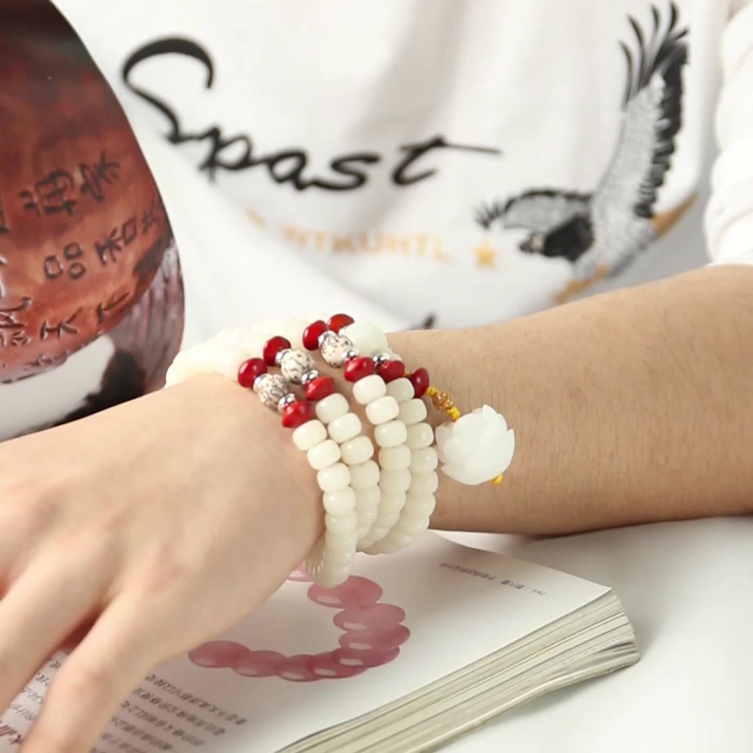 Hainan Huanghuali Wood 108 Beads Bracelet – Original White Bodhi Root & Lotus Wood Mala, Wholesale Wooden Jewelry