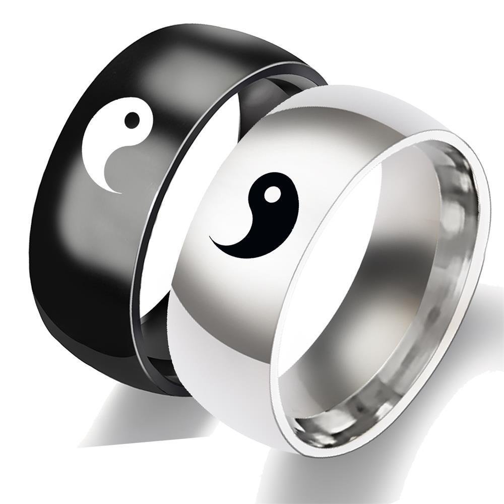 Couple’s Yin Yang Titanium Rings – Black & Silver Taiji Bagua Symbol Rings for Men & Women