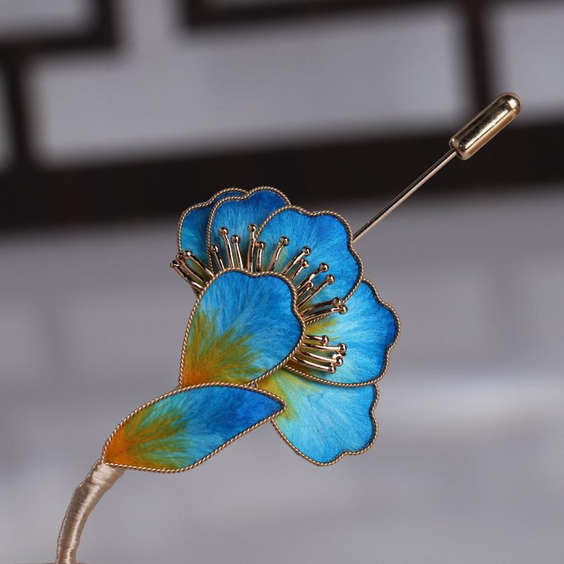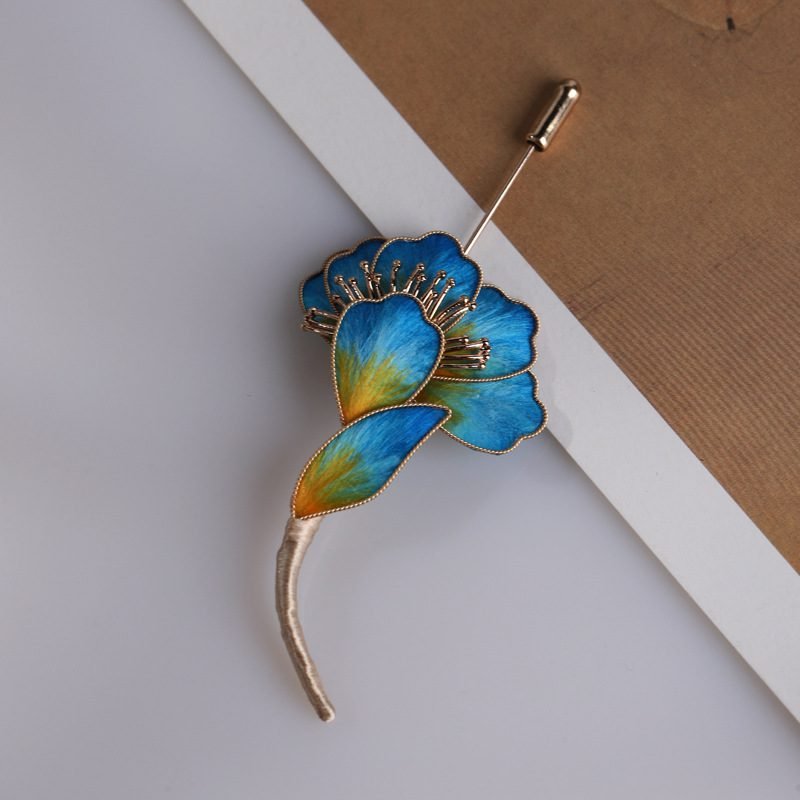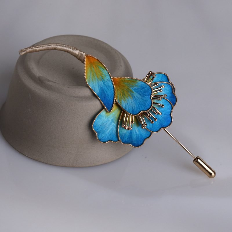 New Chinese Style Peony Brooch – Original Handcrafted Filigree Velvet Flower Pin – Intangible Cultural Heritage Design