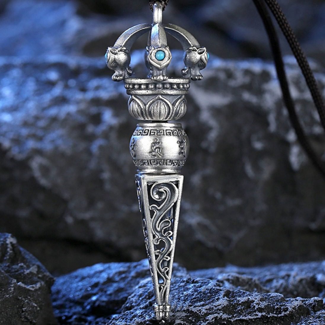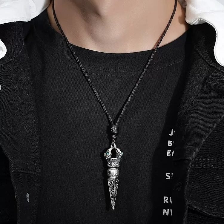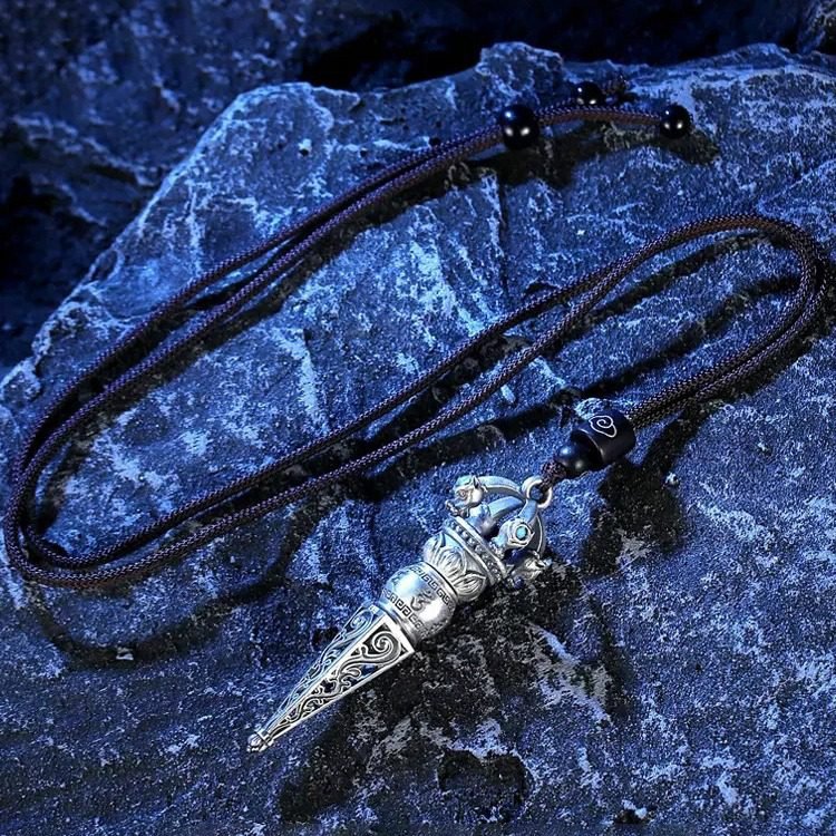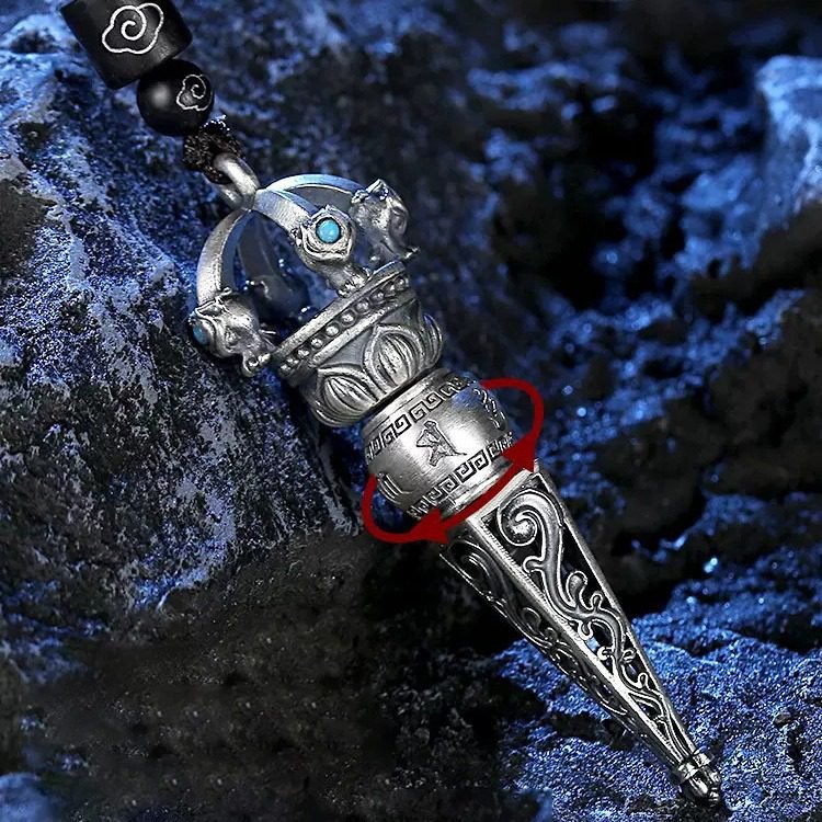 Trendy 999 Sterling Silver Six-Word Mantra Vajra Pendant – Vintage Exorcism Ritual Necklace for Men and Women