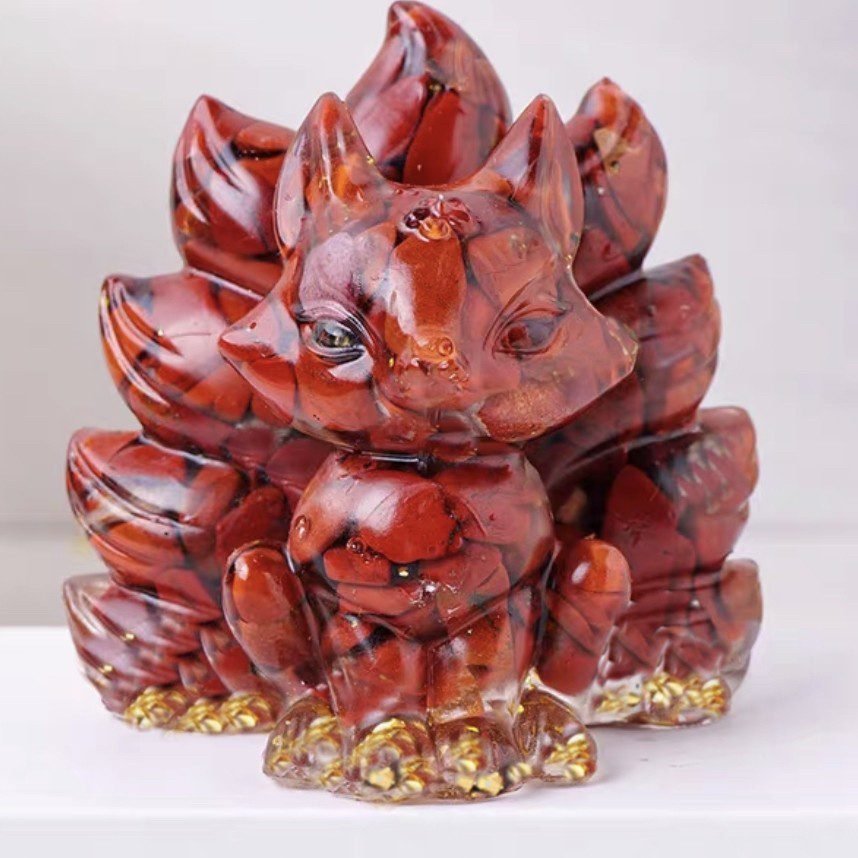 Feng Nine-Tailed Fox Figurine – Glass & Resin Crystal Decor, Enhances Love & Romance, Couple Gift