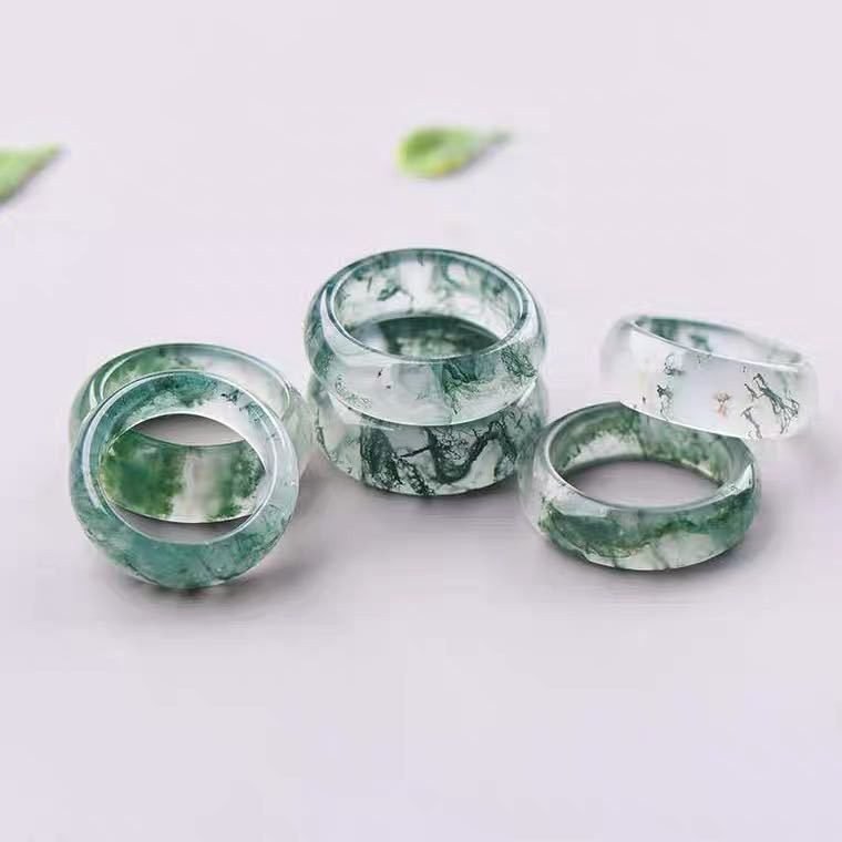 Peach Blossom Agate Ring – Natural Moss Agate Chalcedony Band for Couples, Adjustable Ice-Type Floral Thumb or Index Ring