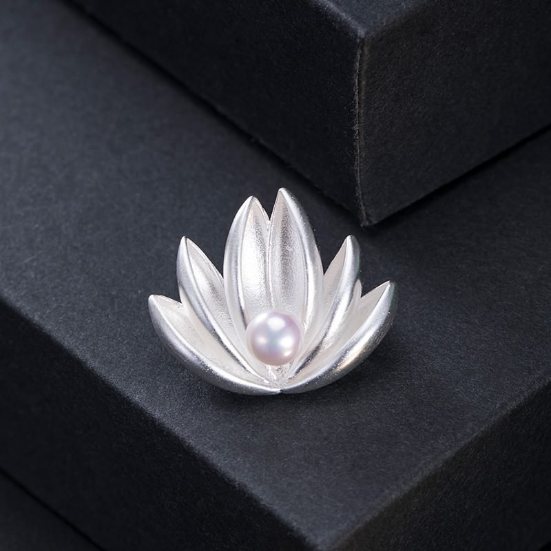 Su Shiba S925 Silver Ethnic Style Flower Collar Pin – Creative Pearl-Set Lotus Brooch, Fashion Accessory