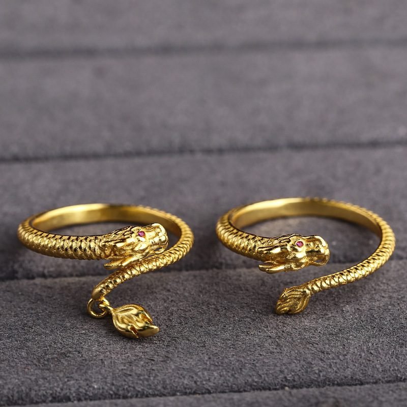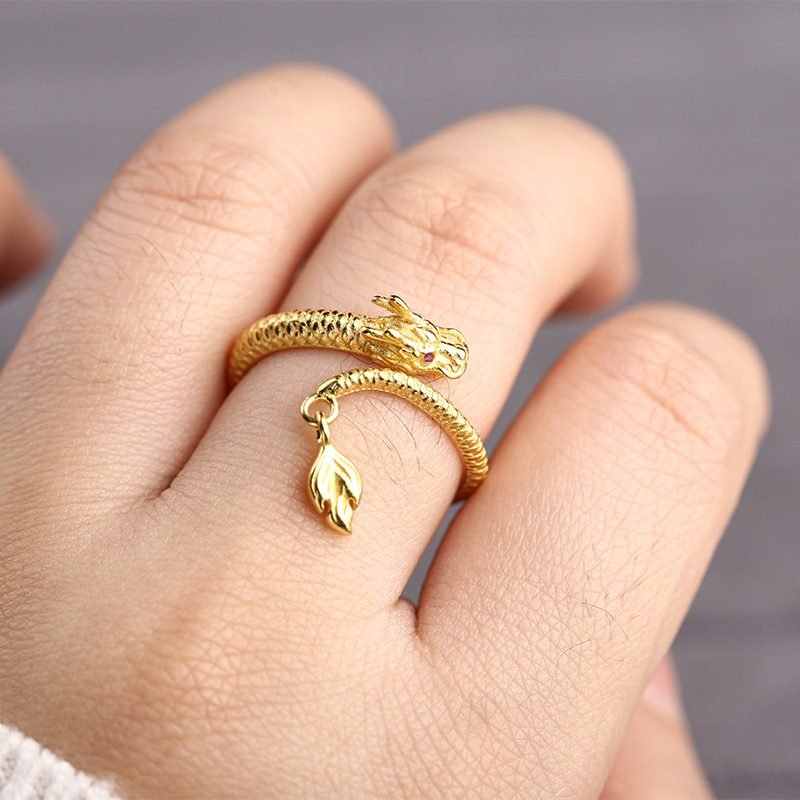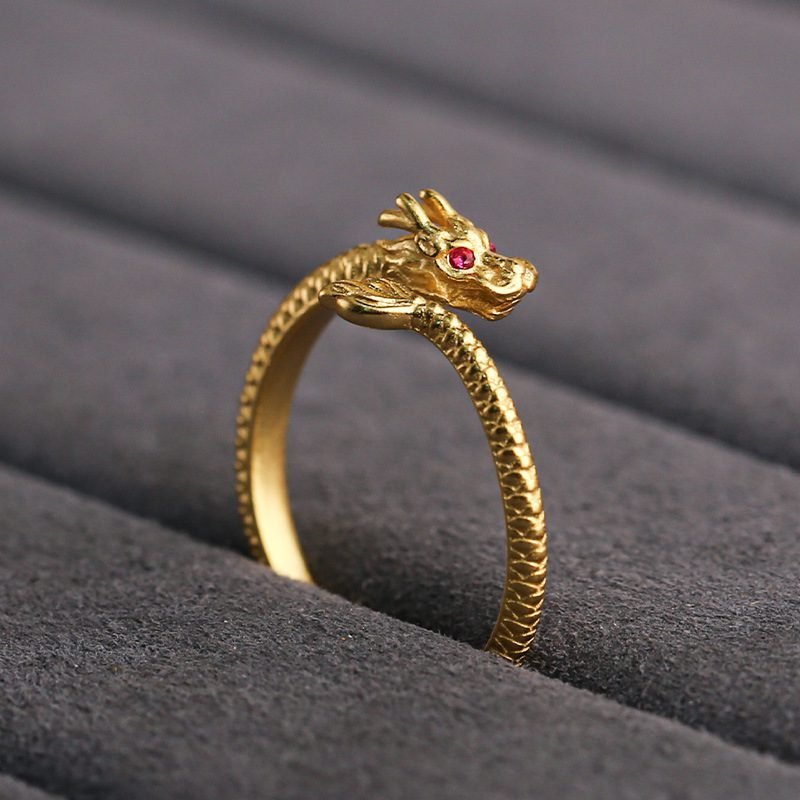 S925 Sterling Silver Dragon Ring – Gold-Plated Vintage DIY Pendant and Jewelry Accessory