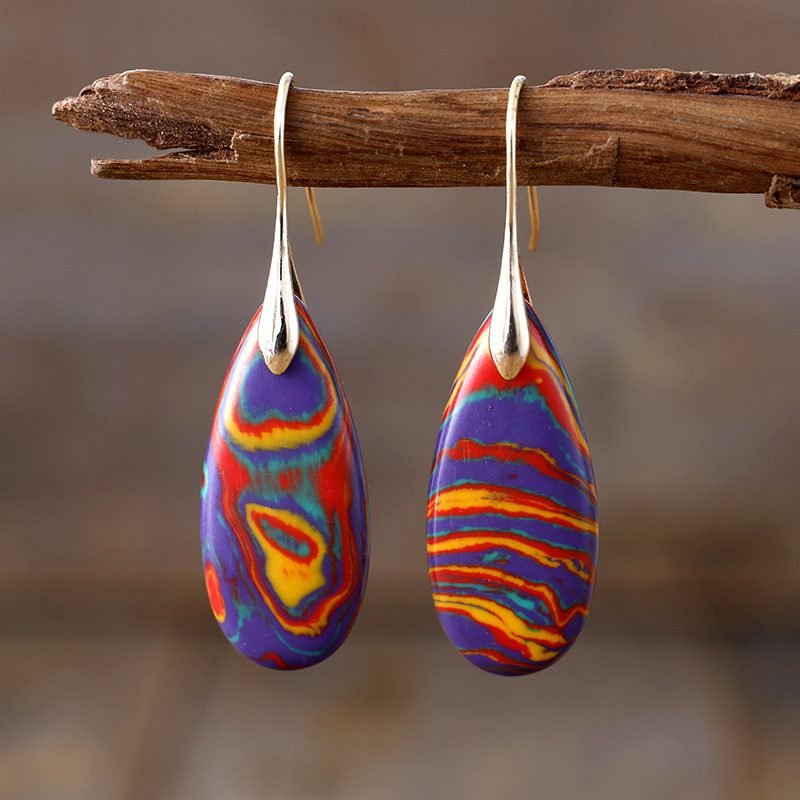 Bohemian Emperor Stone Teardrop Dangle Earrings – New European Style Natural Gemstone Jewelry for Women
